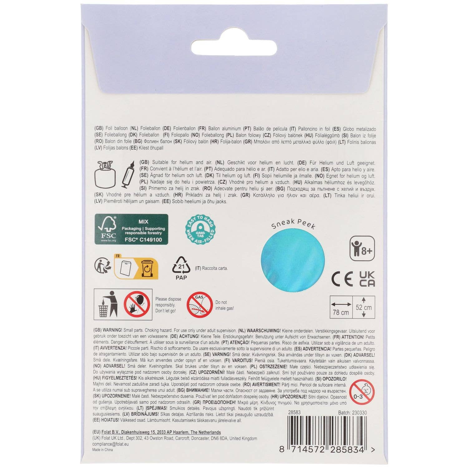 Geeignet für Helium und Luft. Kann einfach an den praktischen Aufhängelaschen aufgehängt werden. Dieser Artikel ist aus Folie gefertigt.