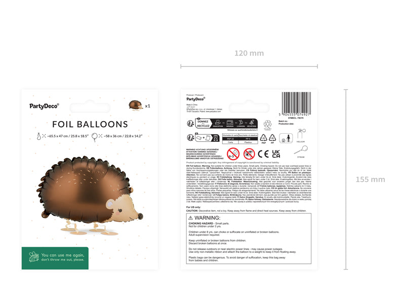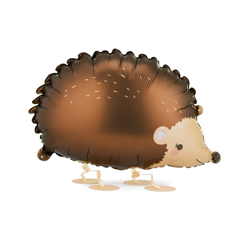 Laufender Folienballon Igel, in braun. Maße vor dem Aufblasen ca. 65,5 x 47 cm, Maße nach dem Aufblasen ca. 58 x 36 cm. Beinhöhe ca. 10 cm.