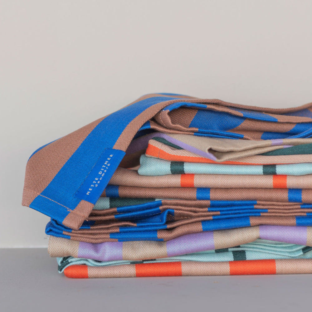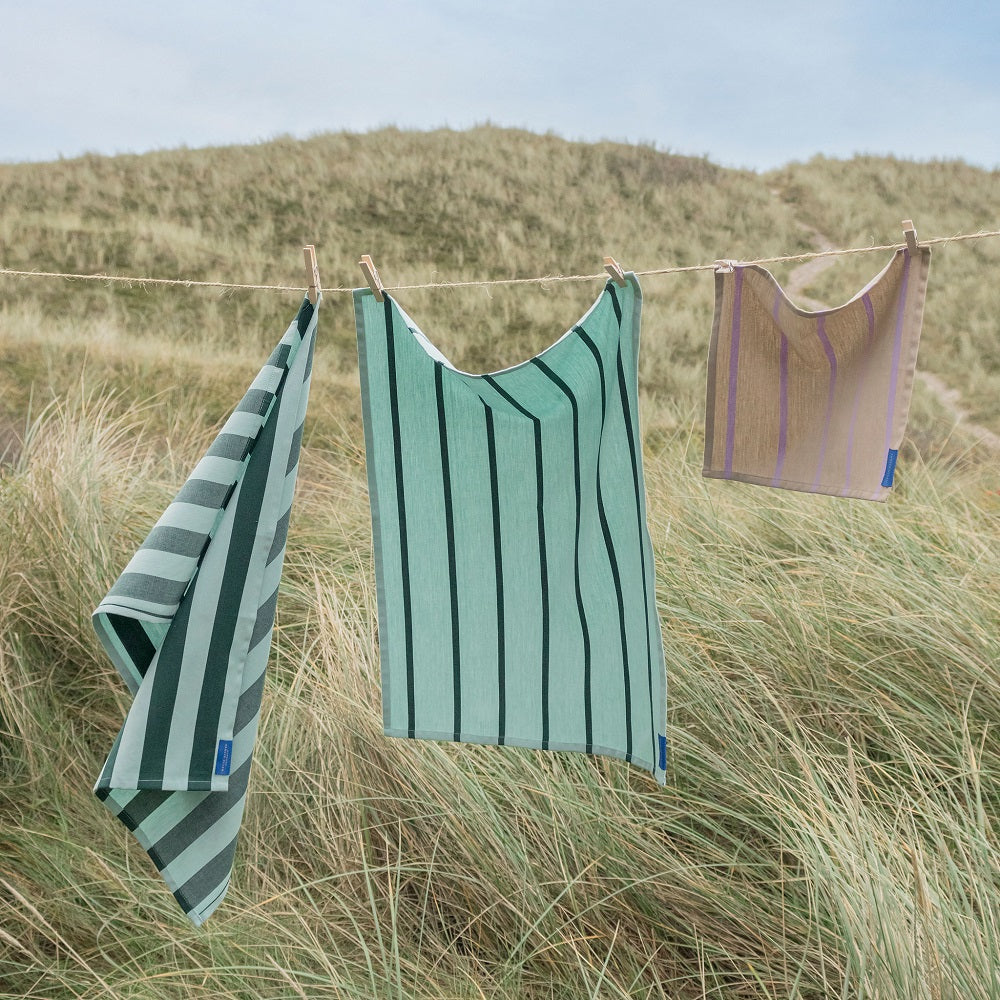 STRIPES bringt leuchtende Farben in Ihre Kücheneinrichtung. Diese farbenfrohen Geschirrtücher von Mette Ditmer sind im 2er-Set erhältlich und bestechen durch zwei markante Streifendesigns – eines mit kräftigen, breiten Streifen, das andere mit zarten, schmalen Streifen. Das faszinierende Streifenmuster in Mintgrün und Grün verleiht dem Design eine dynamische Note, die durch den charakteristischen Mette Ditmer-Touch noch verstärkt wird. Das kontrastierende Etikett und der Aufhänger in Kobaltblau runden das Design ab.