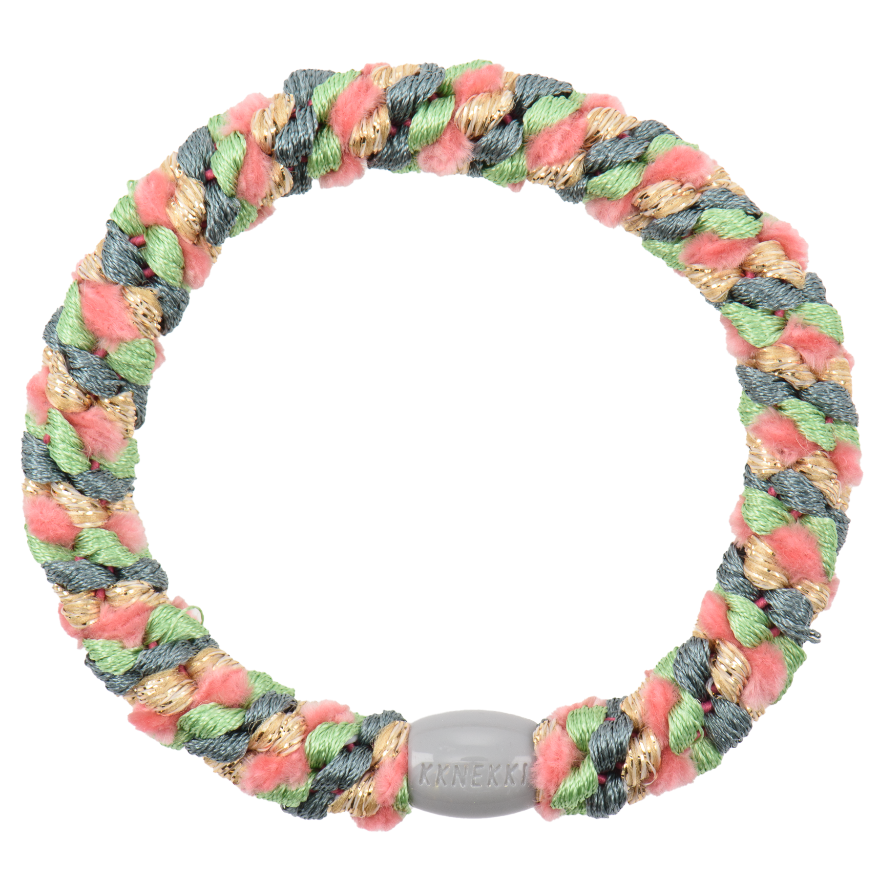The KKNEKKI hair tie comes from the Norwegian company Bon Dep. Woven from more than 60 polyester threads in a special process, the KKNEKKI is able to maintain its durability over time while being extremely soft and gentle on every hair structure. The extraordinary hair tie is also allergy-friendly. The unique spinning and weaving technique allows for an almost endless number of color combinations, leaving nothing to be desired. It also ensures that the colors do not fade or fray when in contact with salt water.