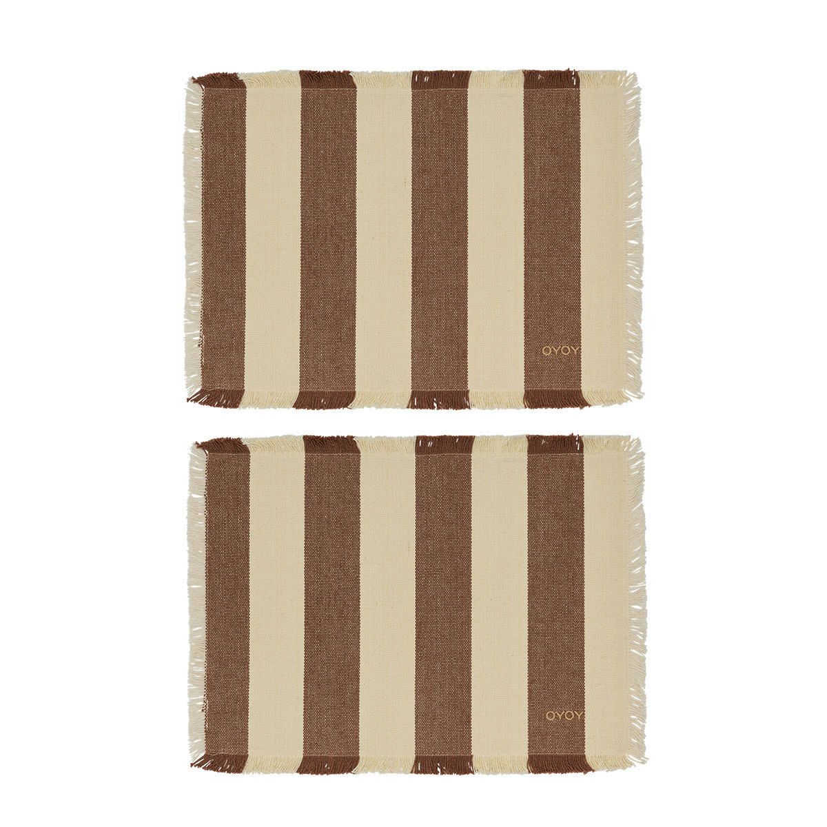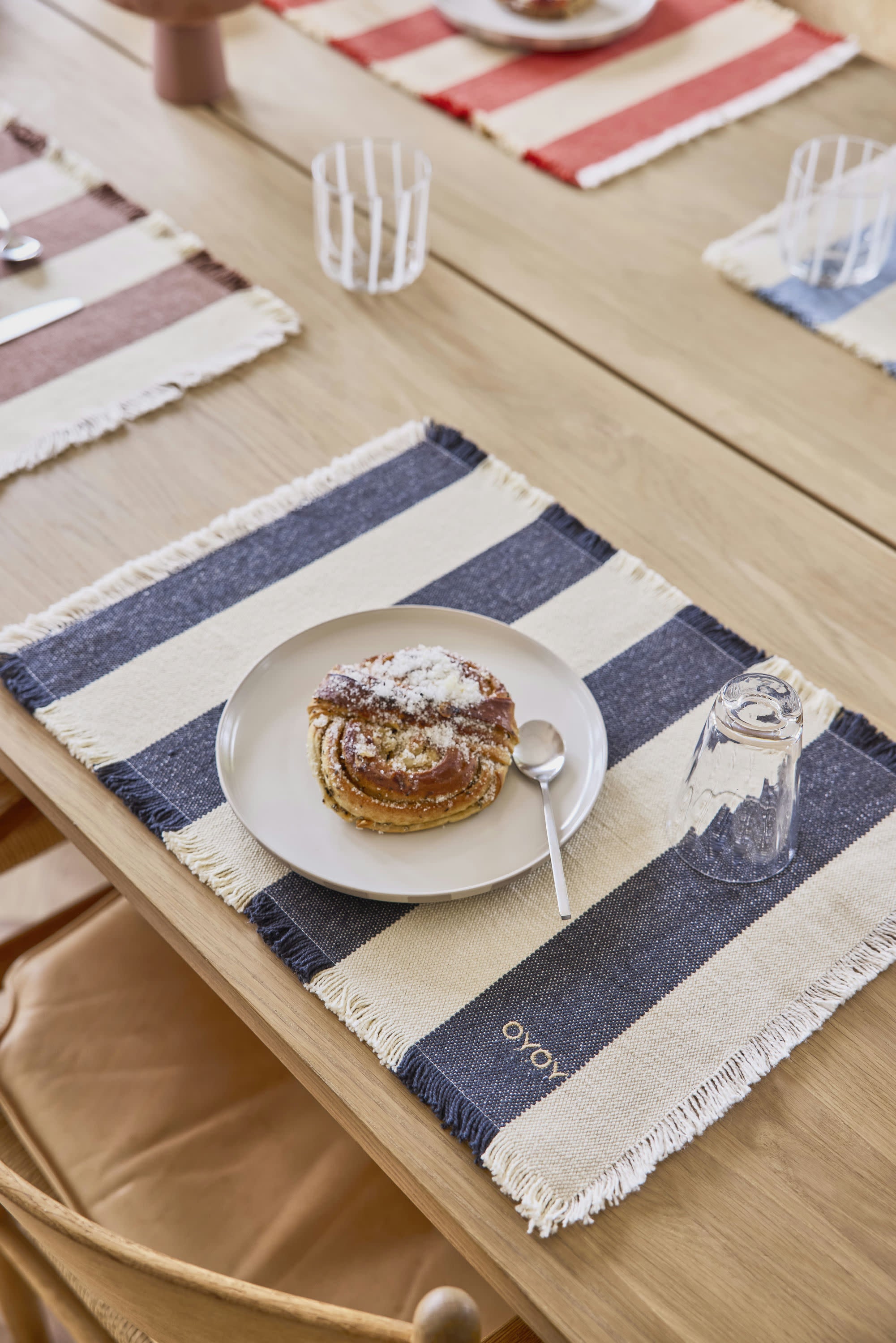 Das gewebte Platzset von Toppu besteht aus 100 % Bio-Baumwolle in schwerer Qualität. Die Fransen an den Enden verleihen ihm eine dezente, dekorative Note.