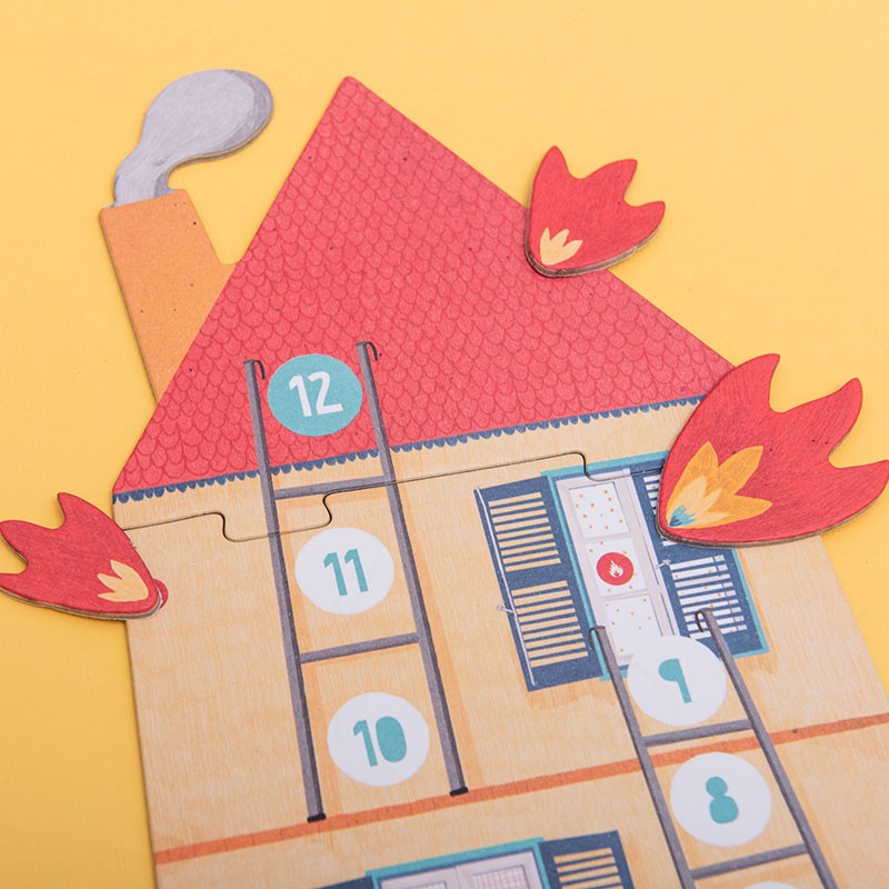Ein kooperatives Brettspiel für Kinder ab 4 Jahren, bei dem wir den Feuerwehrleuten helfen müssen, ein Kätzchen aus dem Feuer zu retten! Im Taschenformat für unterwegs.
