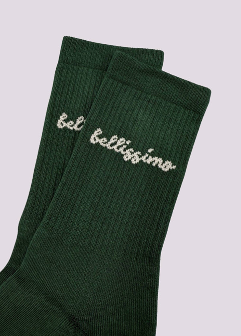 Sag Bellissimo – für all die schönen Dinge, die das Leben leicht machen. Ein Wort voller Charme und Lebensfreude, das so klingt, wie es sich anfühlt: unkompliziert, positiv, einfach schön. Dieser Socken kombiniert ein schönes Dunkelgrün mit einem hellgrauen bellissimo-Schriftzug und bringt eleganten Esprit in jedes Outfit. Stilvoll, frisch, lässig. Teil unserer Colorful Statement Kollektion. Wie immer: Bio-Baumwolle, perfekte Passform.