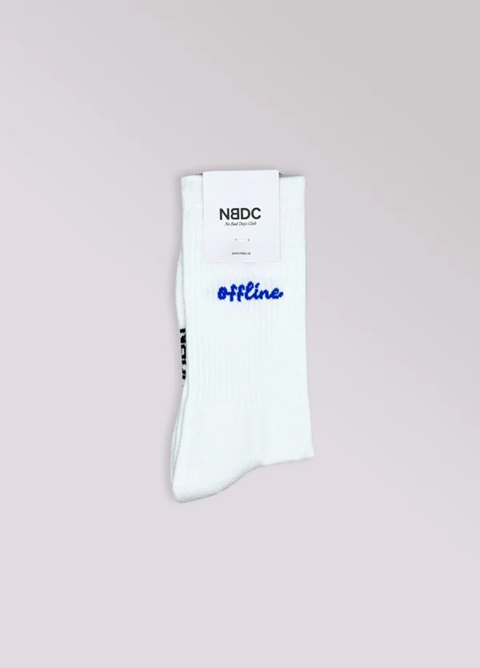 Sag Offline und gönn dir eine Pause. Dieser Socken bringt mit cleanem weiß und dem blauen offline Schriftzug genau die Ruhe rein, die du brauchst. Digital Detox für die Füße – und für deinen Style. Teil unserer Colorful Statement Kollektion.