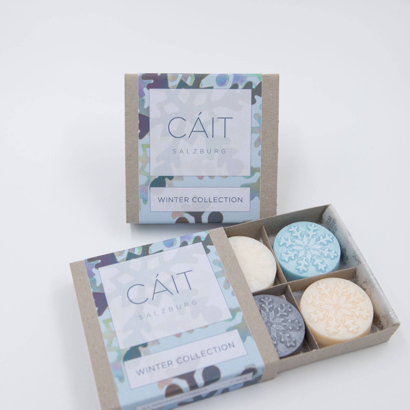Verschenke winterliche Stimmung mit vier Schneeflocken-Melts, jede mit einem einzigartigen Duft der Saison.