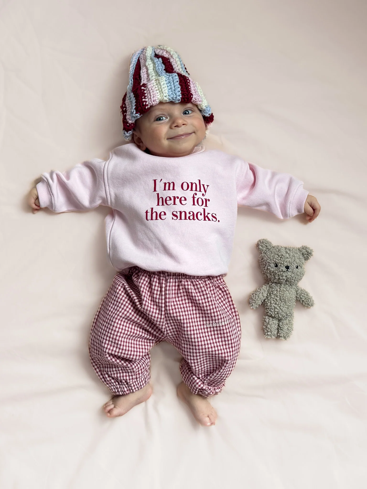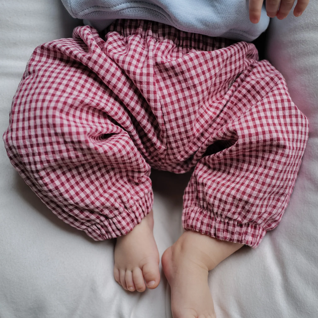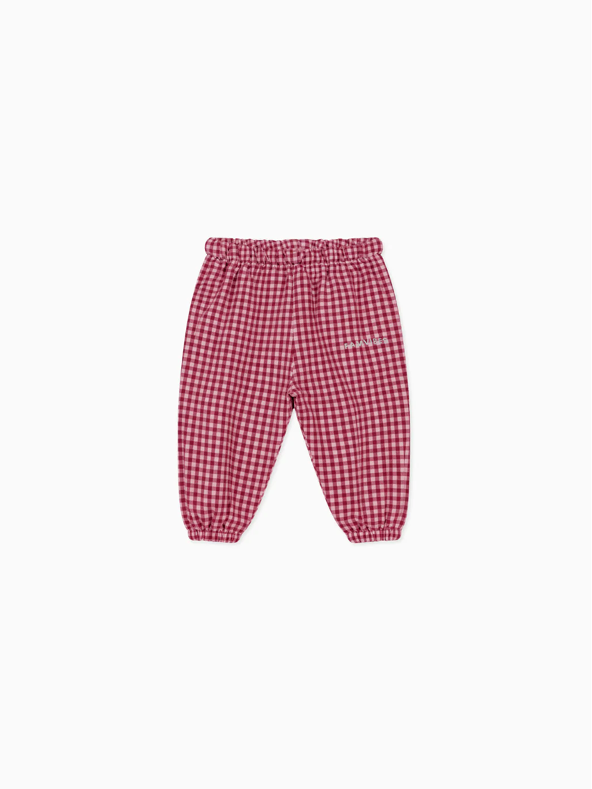Superleichte Baby-Pants im niedlichen Pyjama-Look – perfekt für kleine Entdecker. Die gerade geschnittenen Beine sorgen für viel Bewegungsfreiheit, während das weiche, leichte Material sanft auf zarter Babyhaut liegt. Das zeitlose Rot/Weiß Vichykaro-Muster macht die Hose zu einem echten Hingucker im Alltag und lädt zum Spielen, Kuscheln und Entdecken ein.