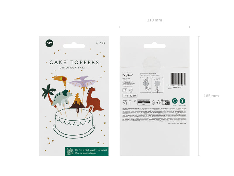 Dinosaurier-Tortentopper Set mit 6 Toppern auf Holzstäbchen