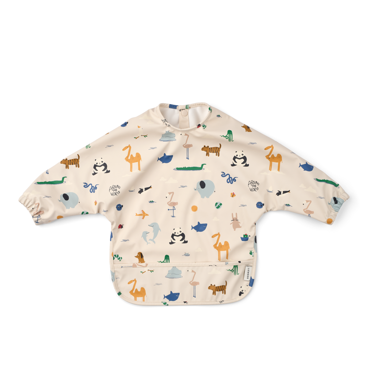Leichtes Ärmellätzchen für kleine Feinschmecker. Die elastischen Bündchen sorgen für eine perfekte Passform und die Große Vordertasche fängt verschüttetes Essen auf. Hergestellt aus strapazierfähigem, Recyceltem Polyester, ist das Ärmellätzchen leicht zu reinigen und kann für eine kompakte Aufbewahrung zu Hause oder unterwegs zusammengefaltet werden.