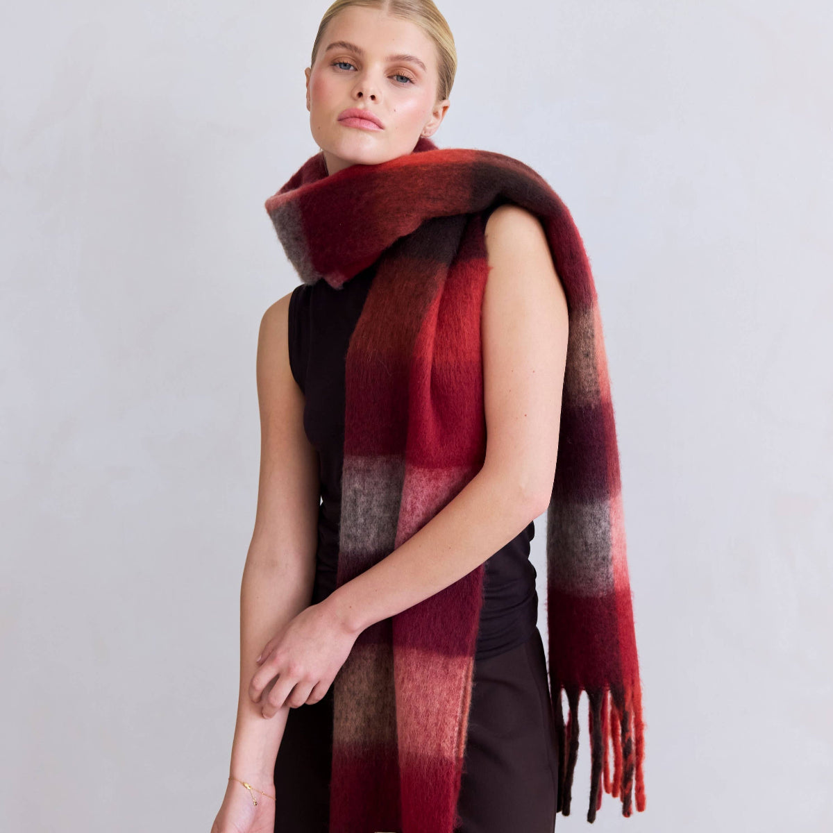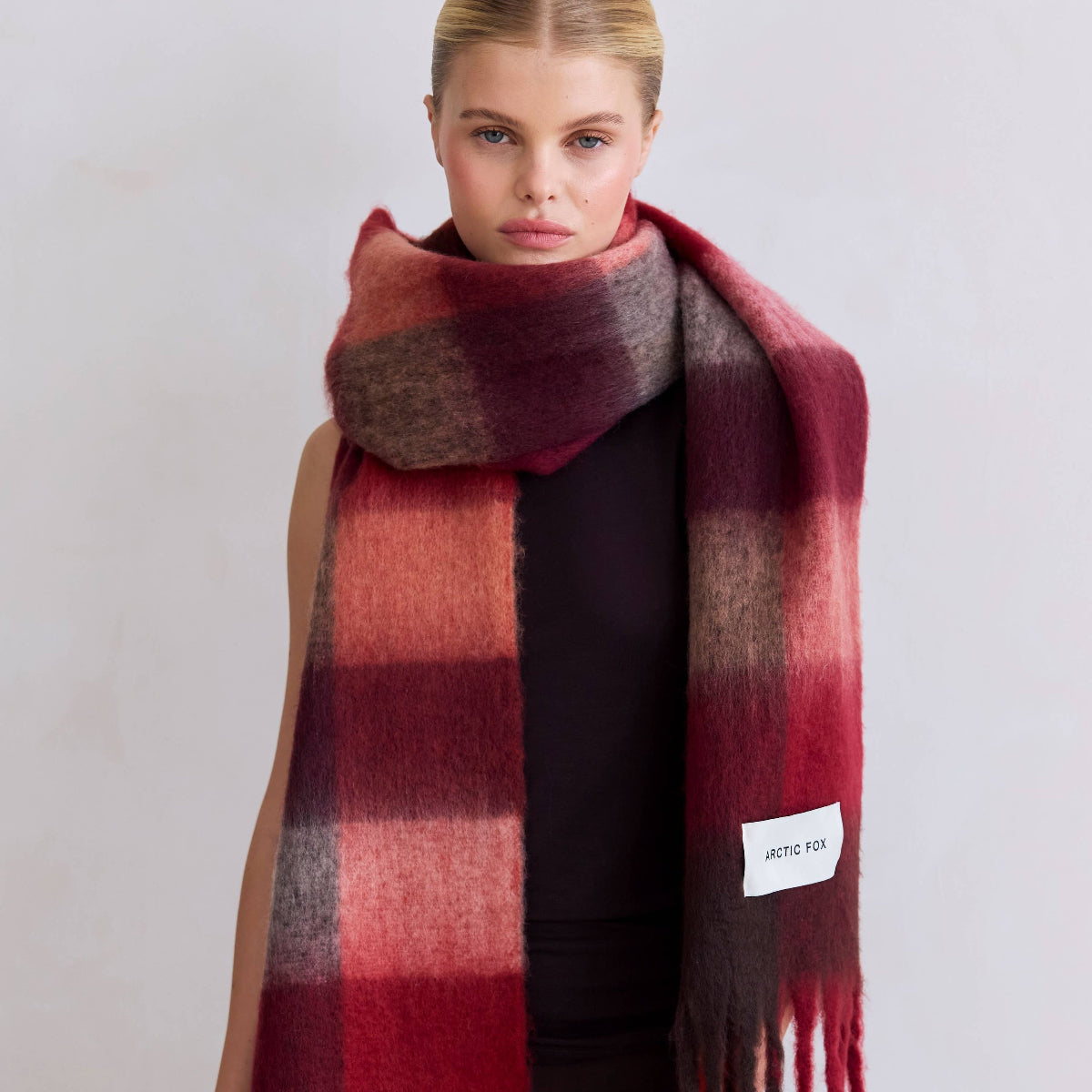 Reykjavik-Schal - 100 % recycelt - Burgunder-Karo