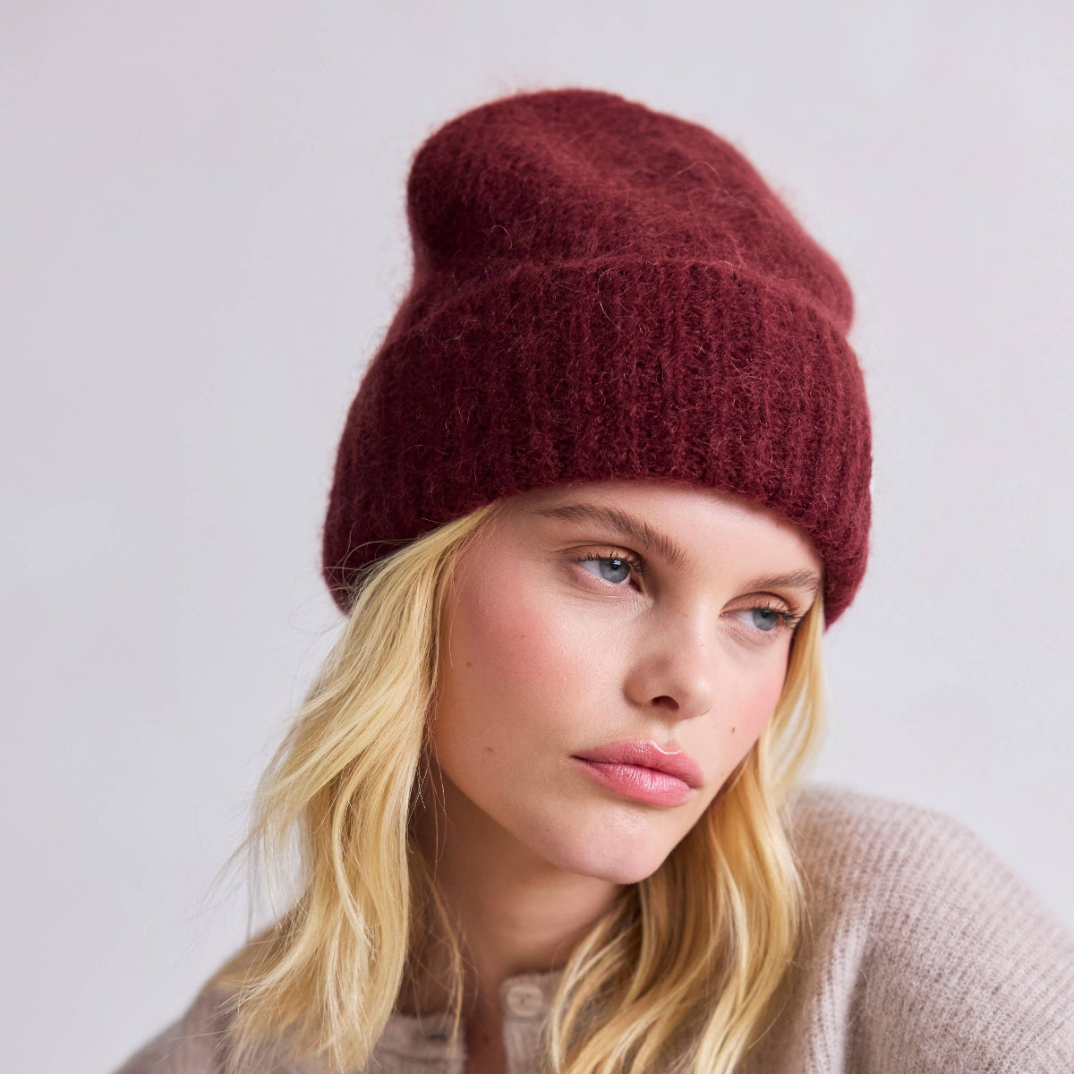 Mohair-Mütze - Kirsch-Burgund