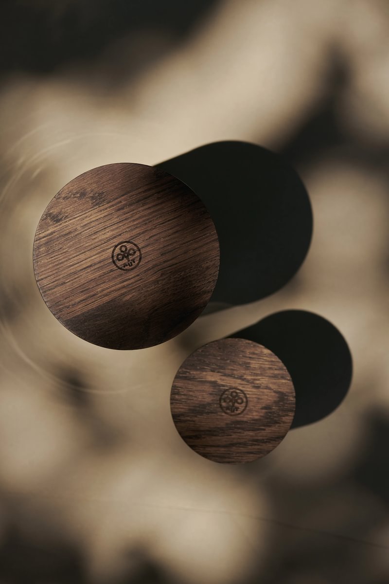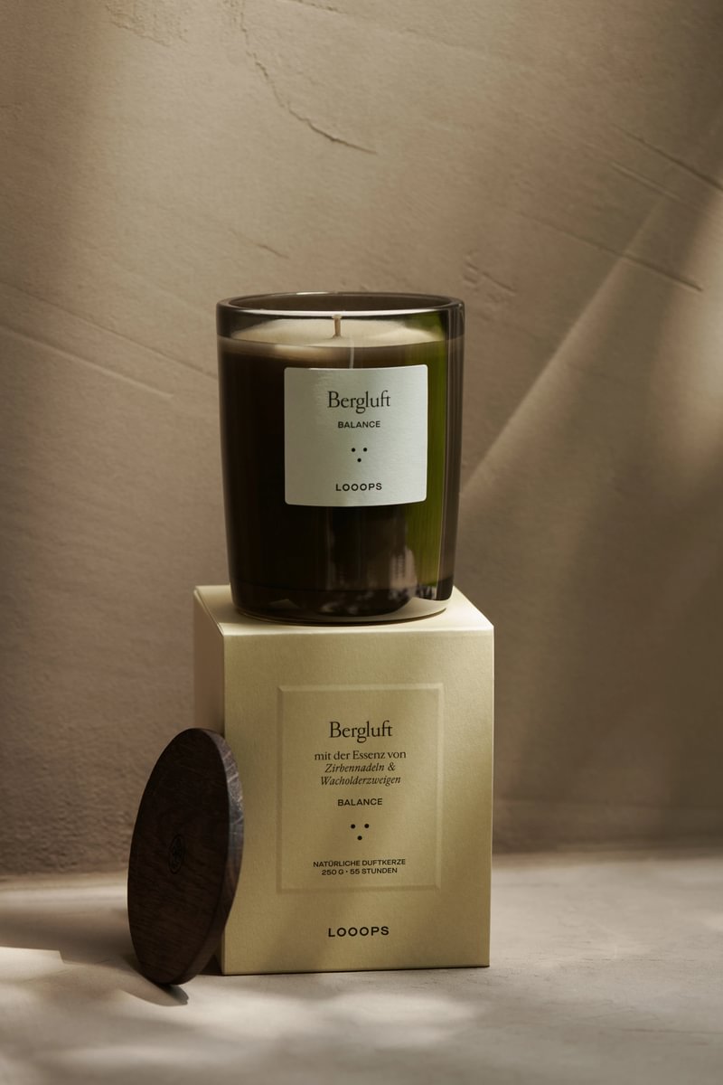 Natürliche Duftkerze aus pflanzlichem Wachs und 100 % naturreinen ätherischen Ölen. Mit Deckel aus gebeizter Eiche. Handgemacht in Salzburg.
