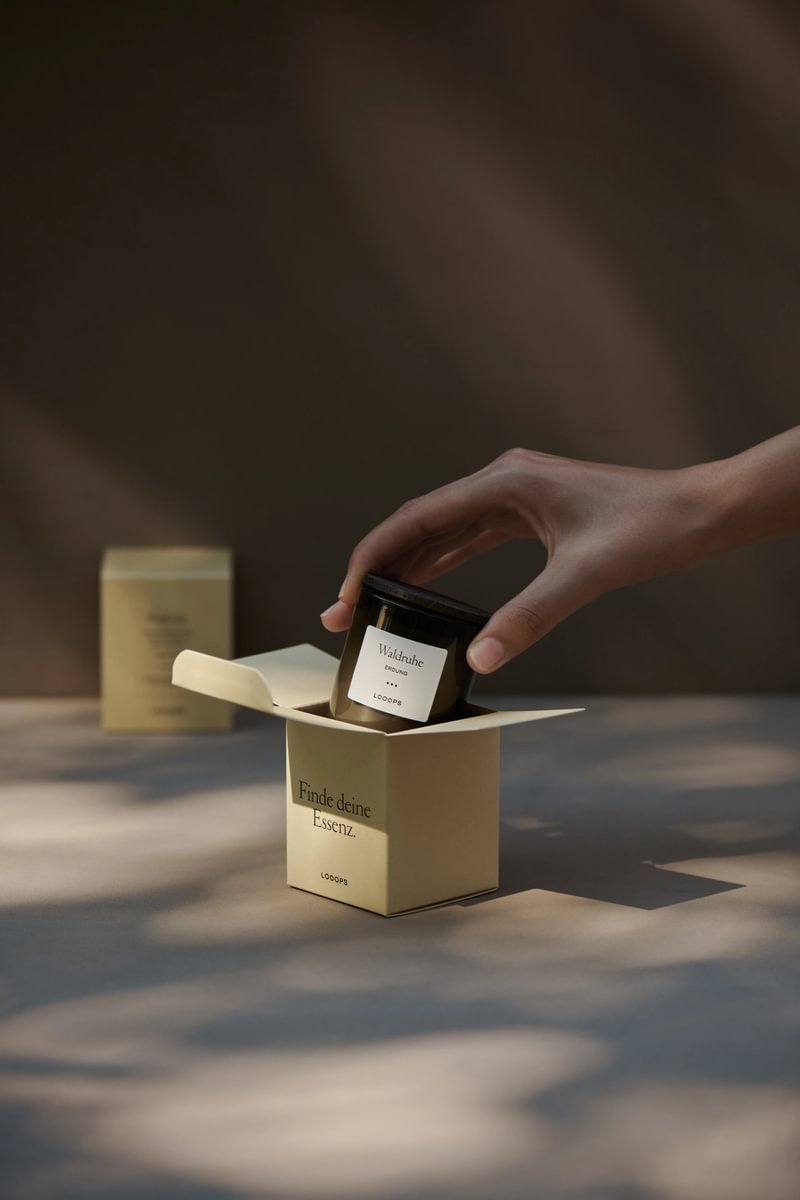 Natürliche Duftkerze aus pflanzlichem Wachs und 100 % naturreinen ätherischen Ölen. Mit Deckel aus gebeizter Eiche. Handgemacht in Salzburg.