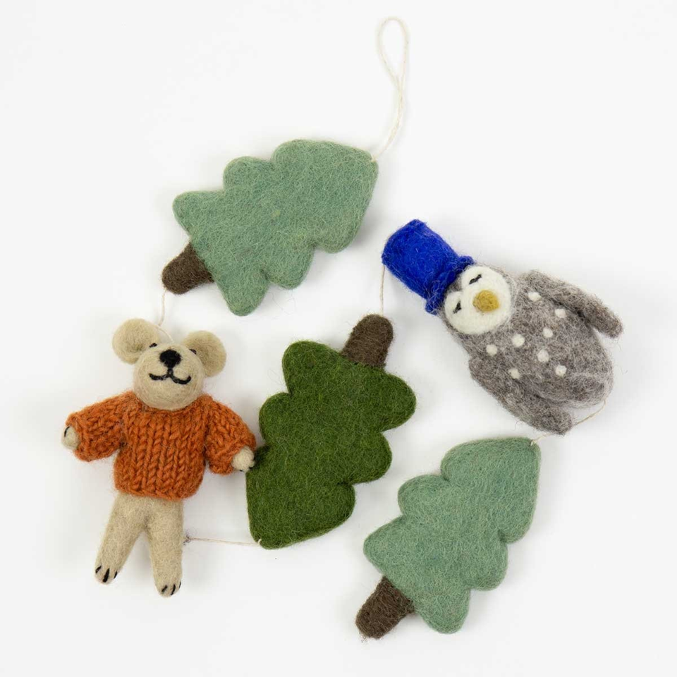 Das FOREST Mobile ist aus frisch handgefilzter Wolle gefertigt. Es ist eine schöne Dekoration für ein Kinderzimmer, im Fenster, über dem Wickeltisch oder von der Decke hängend.