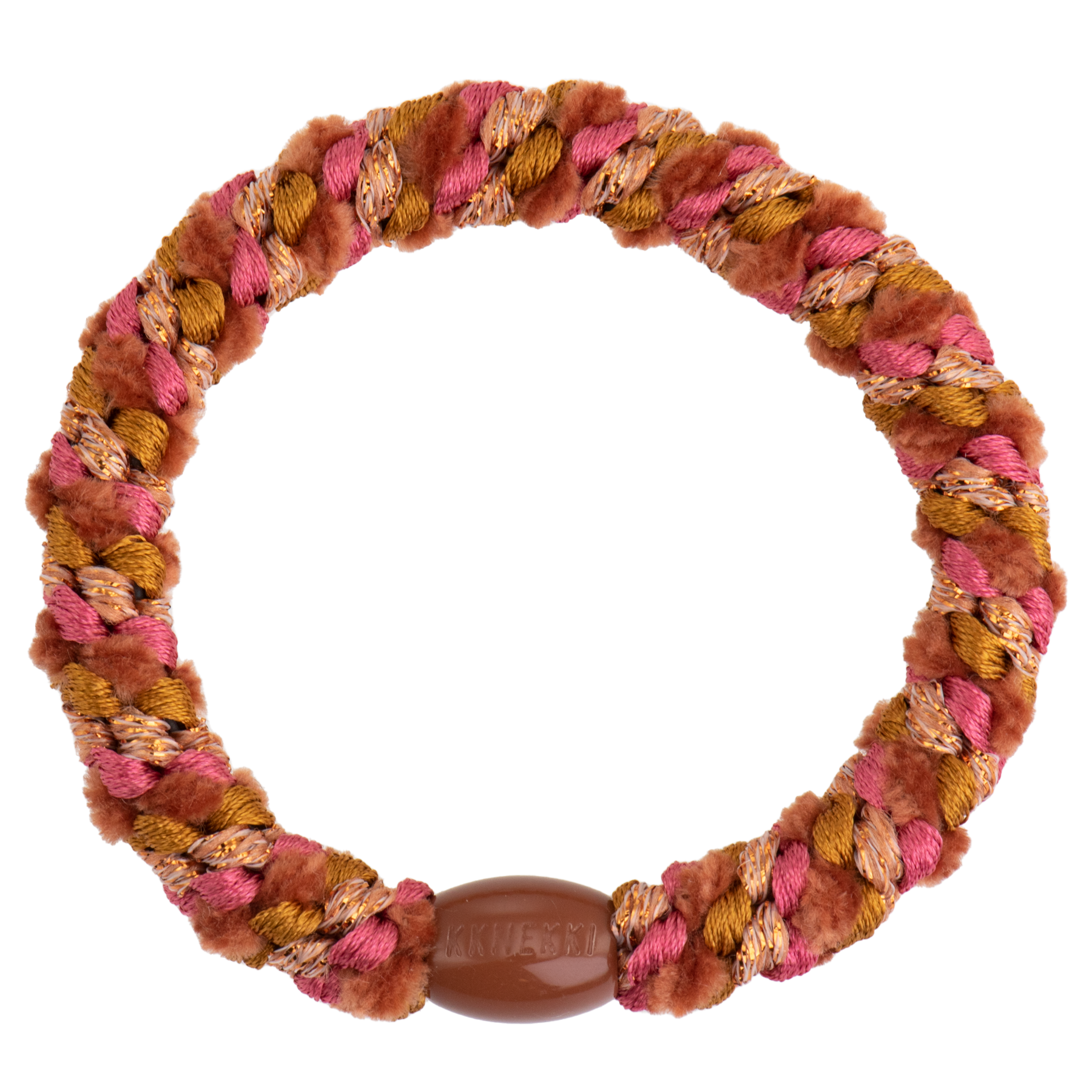 Das KKNEKKI Haargummi stammt aus dem norwegischen Hause Bon Dep. Gewebt aus mehr als 60 Polyester-Fäden in einem besonderen Prozess ist es dem KKNEKKI möglich seine Widerstandsfähigkeit im Laufe der Zeit zu bewahren und gleichzeitig extrem weich und sanft zu jeder Haarstruktur zu sein. Das außergewöhnliche Haargummi ist zudem Allergiker freundlich. Die einzigartige Spinn- und Webtechnik ermöglicht eine nahezu endlose Anzahl an Farbkombinationen und lassen so keinen Wunsch offen. Außerdem wird sichergestellt, dass die Farben beim Kontakt mit Salzwasser nicht verblassen oder ausfransen.