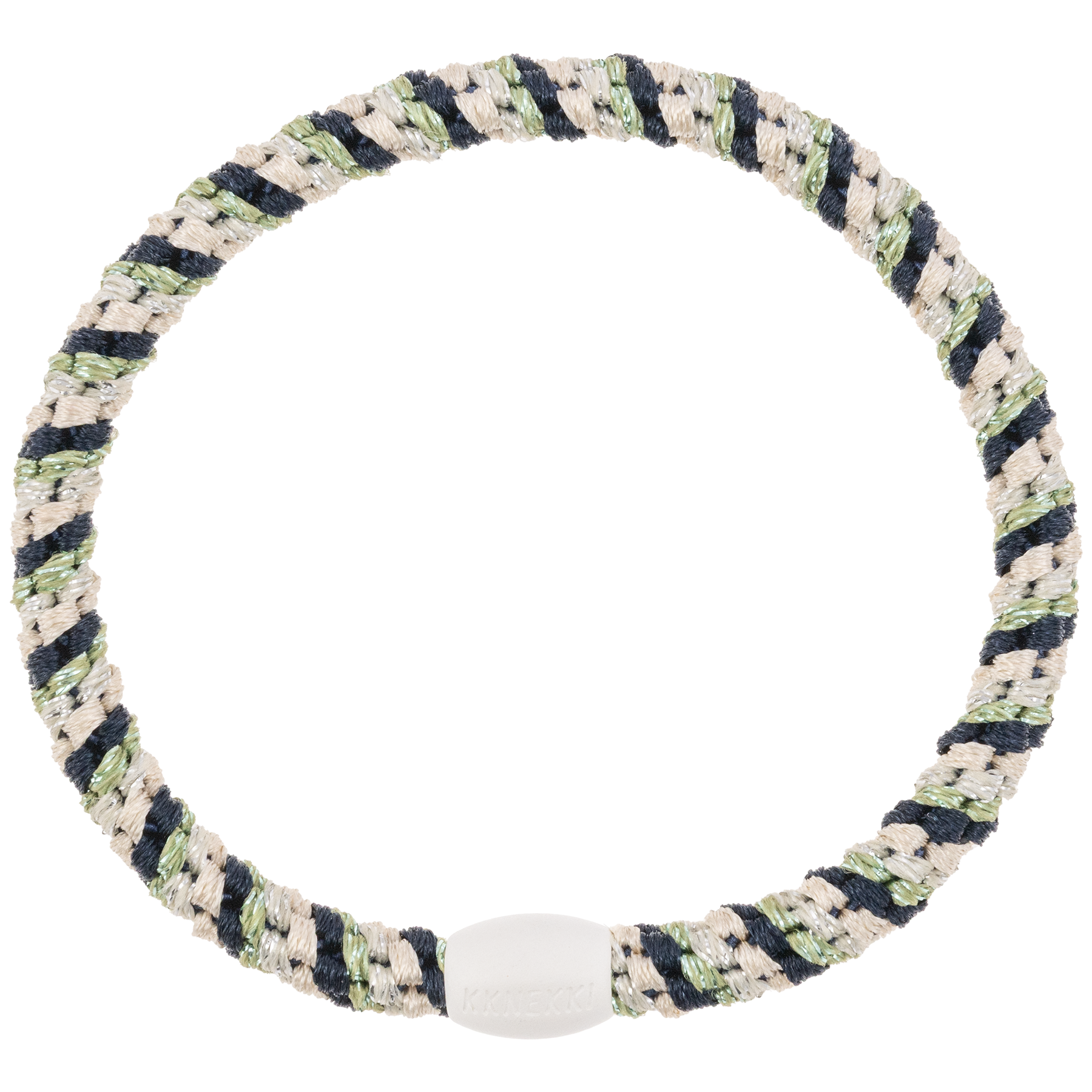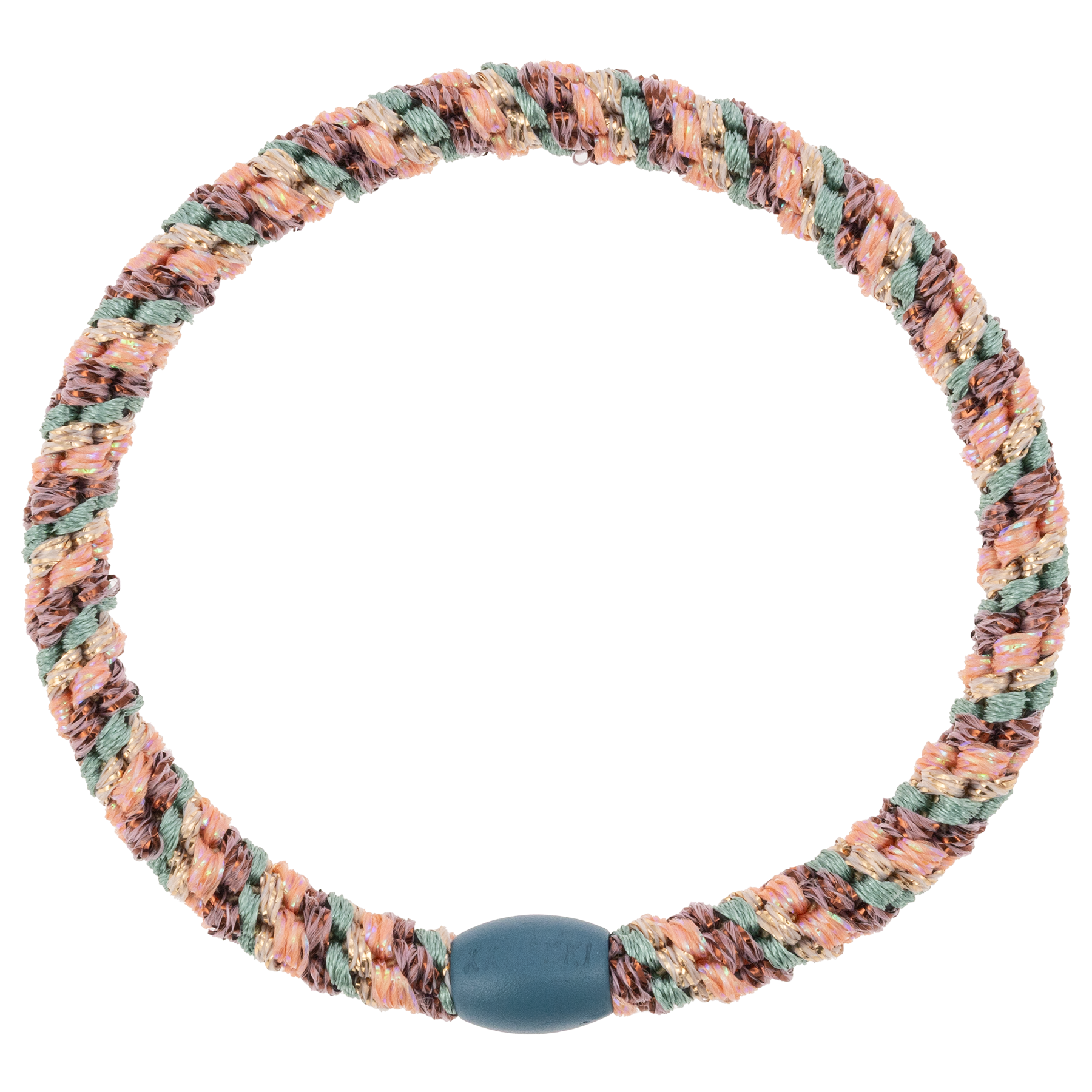 Das KKNEKKI Haargummi stammt aus dem norwegischen Hause Bon Dep. Gewebt aus mehr als 60 Polyester-Fäden in einem besonderen Prozess ist es dem KKNEKKI möglich seine Widerstandsfähigkeit im Laufe der Zeit zu bewahren und gleichzeitig extrem weich und sanft zu jeder Haarstruktur zu sein. Das außergewöhnliche Haargummi ist zudem allergikerfreundlich. Die einzigartige Spinn- und Webtechnik ermöglicht eine nahezu endlose Anzahl an Farbkombinationen und lassen so keinen Wunsch offen. Außerdem wird sichergestellt, dass die Farben beim Kontakt mit Salzwasser nicht verblassen oder ausfransen.