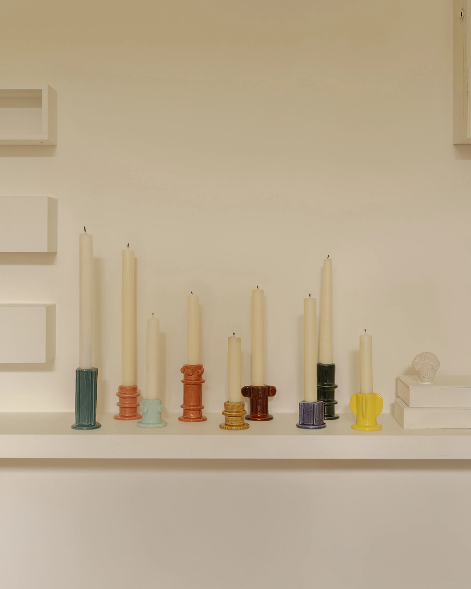 Ein verspieltes Set aus Kerzenhaltern aus Keramik, entworfen von Marie Michielssen für die Molly-Kollektion. Jeder Kerzenhalter hat eine eigene Form und eine farbenfrohe Glasur. Zusammen ergeben sie ein lebendiges Trio, das jedem Interieur Charakter und Kreativität verleiht.