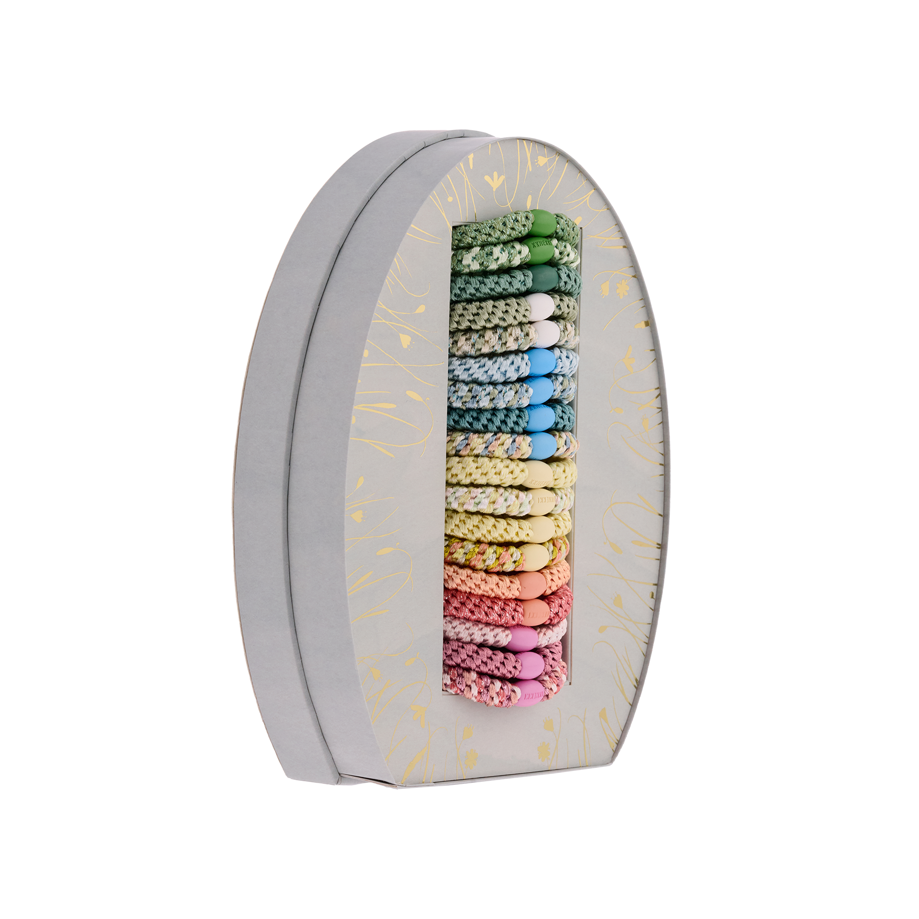 Das KKNEKKI Osterei: Eine exquisite Sammlung von 18 Haargummis in wunderschönen Frühjahrsfarben. Das spielerische Design der norwegischen Künstlerin Signe Torp fängt die Magie des Übergangs von Winter zu Frühling ein.