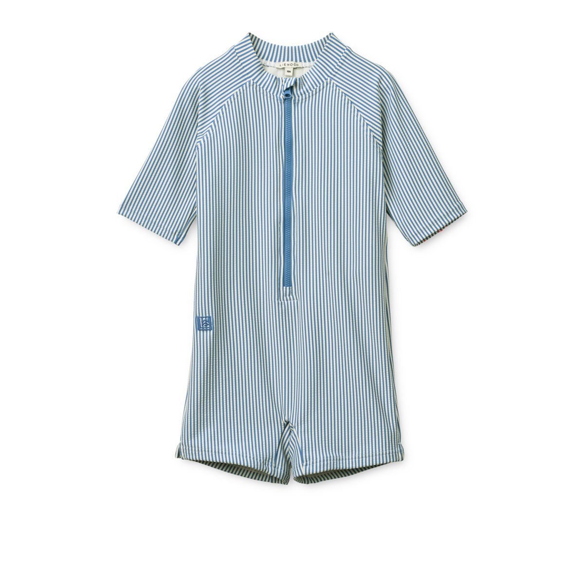 Lasse deine Kleinen mit dem schützenden Max Schwimm-Jumpsuit aus Seersucker-Material mit kurzen Ärmeln und hohem Kragen in der Sonne spielen.