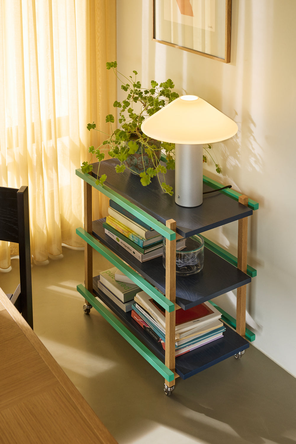 Ein Farbtupfer auf Rädern. Der Crayon Servierwagen bringt mit seiner lebendigen Farbmischung und den sanften, leichten Bewegungen spielerische Energie in Ihren Raum. Hergestellt aus FSC-zertifiziertem Holz, vereint er robuste Funktionalität mit fröhlichem Geist — ideal, um Kunstbedarf, Lieblingsspielzeug zu organisieren oder einfach eine ruhige Ecke aufzuhellen. Mehr als nur Aufbewahrung, ist es ein kleiner Schub von Glück, den Sie von Raum zu Raum rollen können. Denn Farbe hat die Kraft, Sie zu bewegen — wortwörtlich.