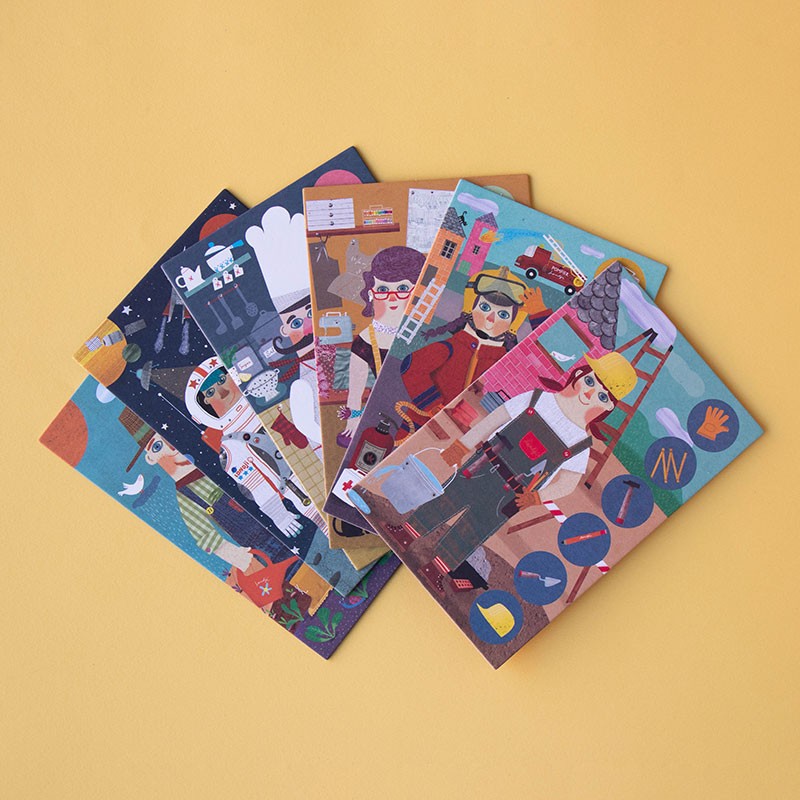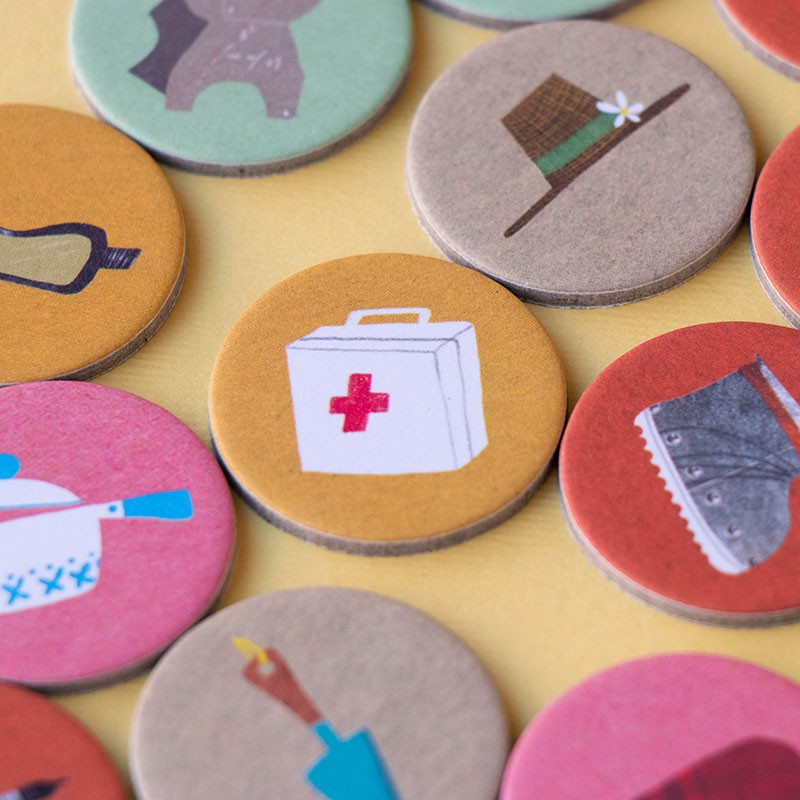 Die Karten mit Illustrationen von Figuren aus verschiedenen Berufen werden an die Spieler verteilt. Reihum, beginnend mit den jüngsten Familienmitgliedern, decken wir die Chips auf, die Bilder von Werkzeugen zeigen, die für jeden Beruf charakteristisch sind. Wenn einer der Spieler das abgebildete Werkzeug auf seiner Karte hat, legt er den Chip auf seine Karte. Wer seine Karte als Erster vervollständigt, gewinnt das Spiel! Ein Spielzeug ohne Geschlechterstereotypen und eine sehr unterhaltsame Möglichkeit, verschiedene Berufe kennenzulernen.