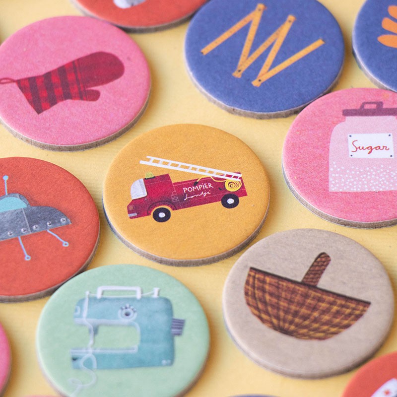 Ein Lottospiel mit verschiedenen Berufen für die ganze Familie. Enthält 36 Spielsteine und sechs recycelte Spielbretter. Ein nachhaltiges Spielzeug ohne Geschlechterstereotypen.