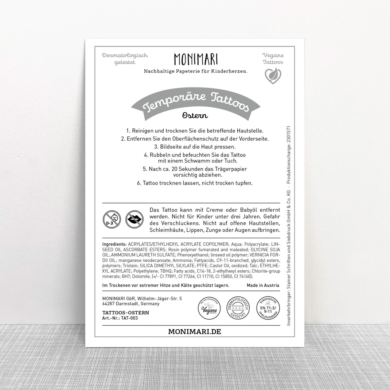 Ein wunderbare Überraschung für das Osternest sind die Tattoos von Monimari. Sie machen einfach Freude und erzeugen ein warmes "Vanille-Pudding-im-Bauch" Gefühl.