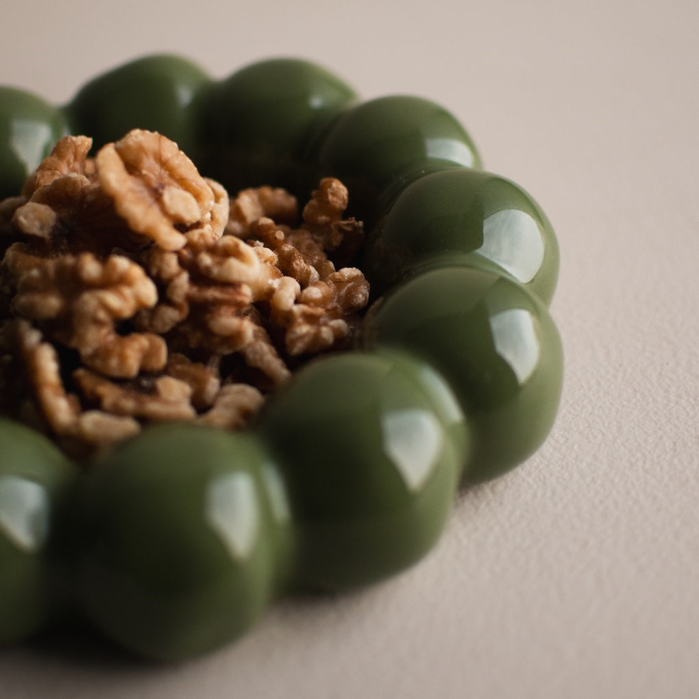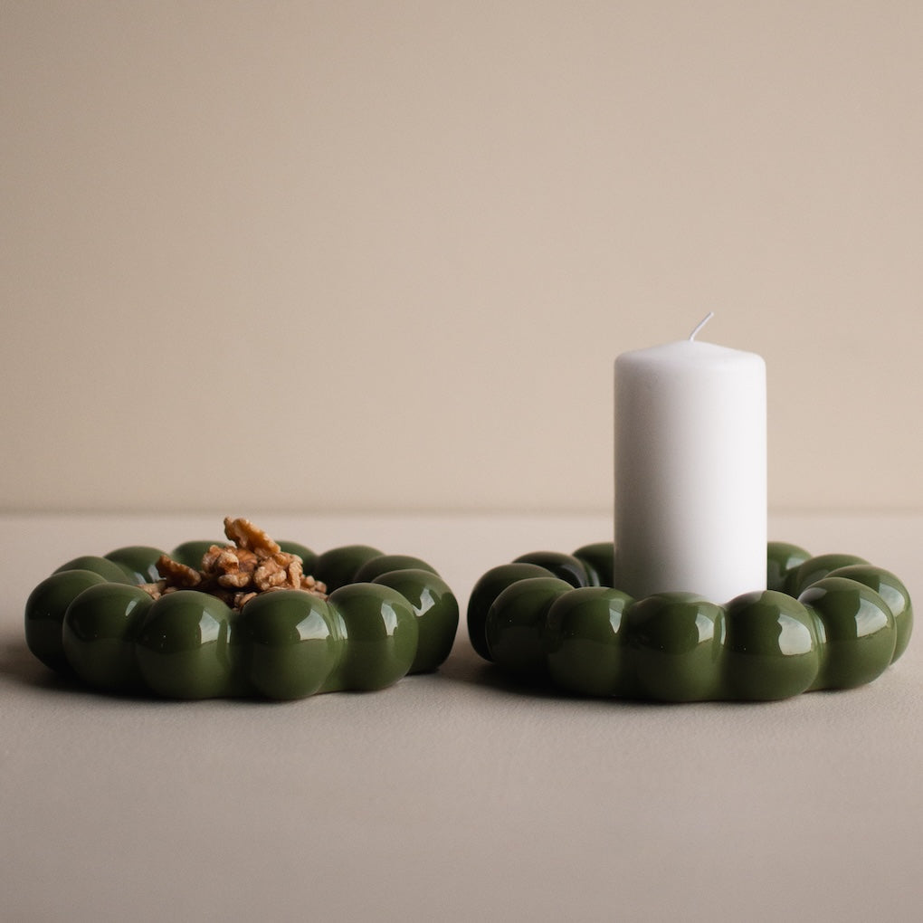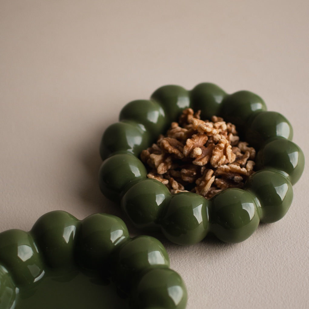 Der geschwungene Teller aus unserer BRIGHT-Serie ist jetzt in glänzendem Grün erhältlich! Perfekt zum Servieren von winterlichen Snacks oder für weihnachtliche Gemütlichkeit mit einer Kerze.