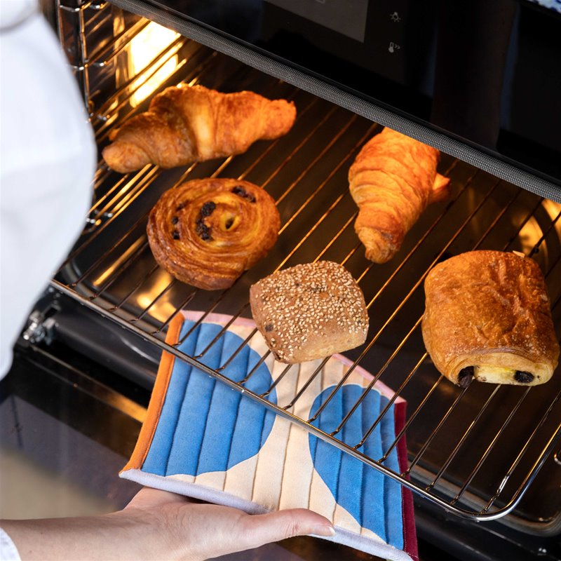 Der Topflappen mit Stickerei vereint Funktionalität mit einem grafischen Akzent für Ihre Küche. Er ist Teil unserer Tischtextilien-Serie und besticht durch ausdrucksstarke Muster unseres hauseigenen Designteams. Die Polsterung bietet zuverlässigen Hitzeschutz, während die raffinierten Farbkombinationen und die saubere Verarbeitung ihn zu einer stilvollen Ergänzung Ihrer täglichen Kochroutine machen.