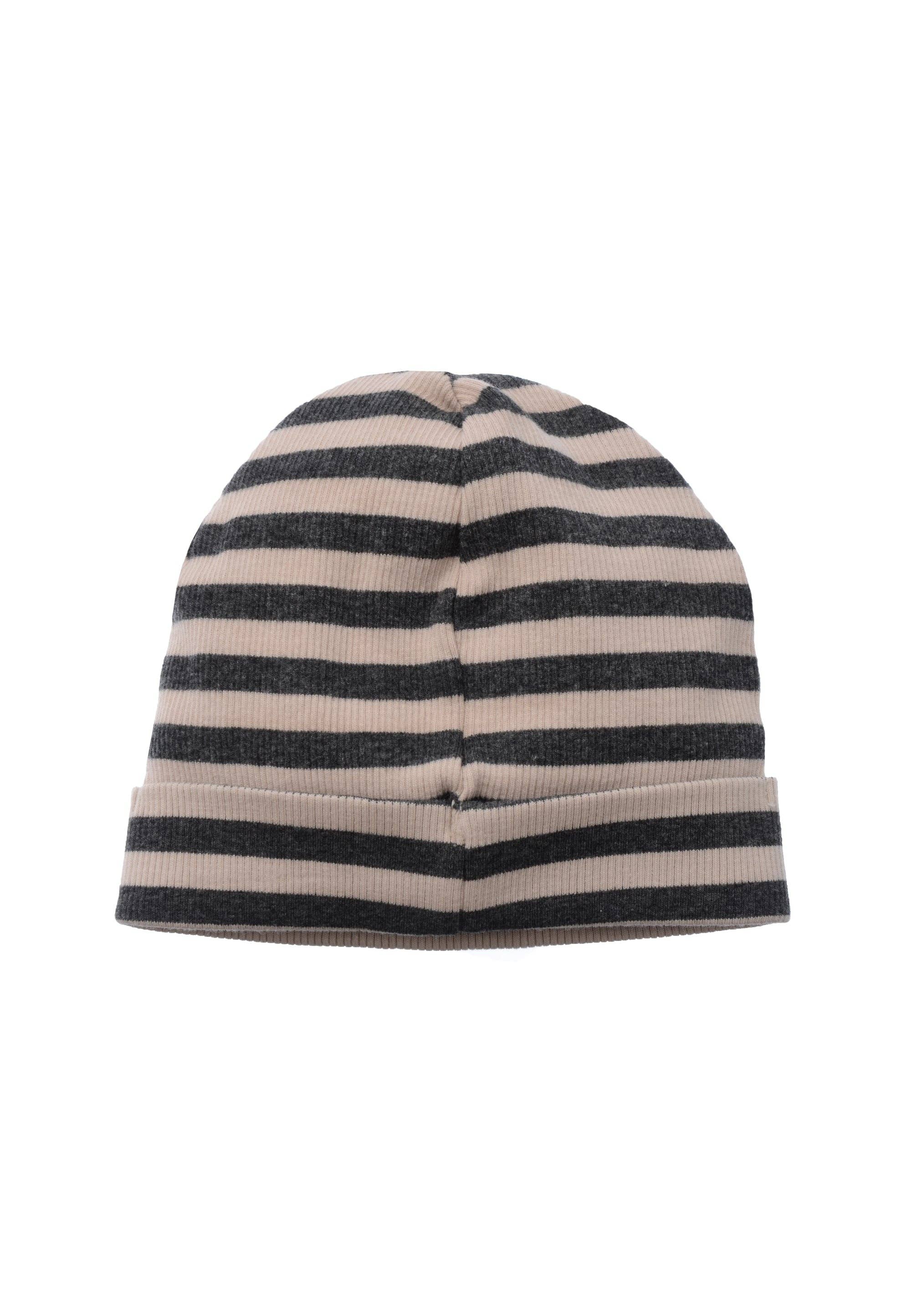 Die Mütze in grau-beige gestreift ist aus weicher Baumwolle und einem kleinen Elasthan Anteil hergestellt. Dadurch lässt sich die Mütze einfach anziehen und bietet einen angenehmen Tragekomfort. Die leichte Mütze spendet angenehme Wärme und schützt vor Zugluft.