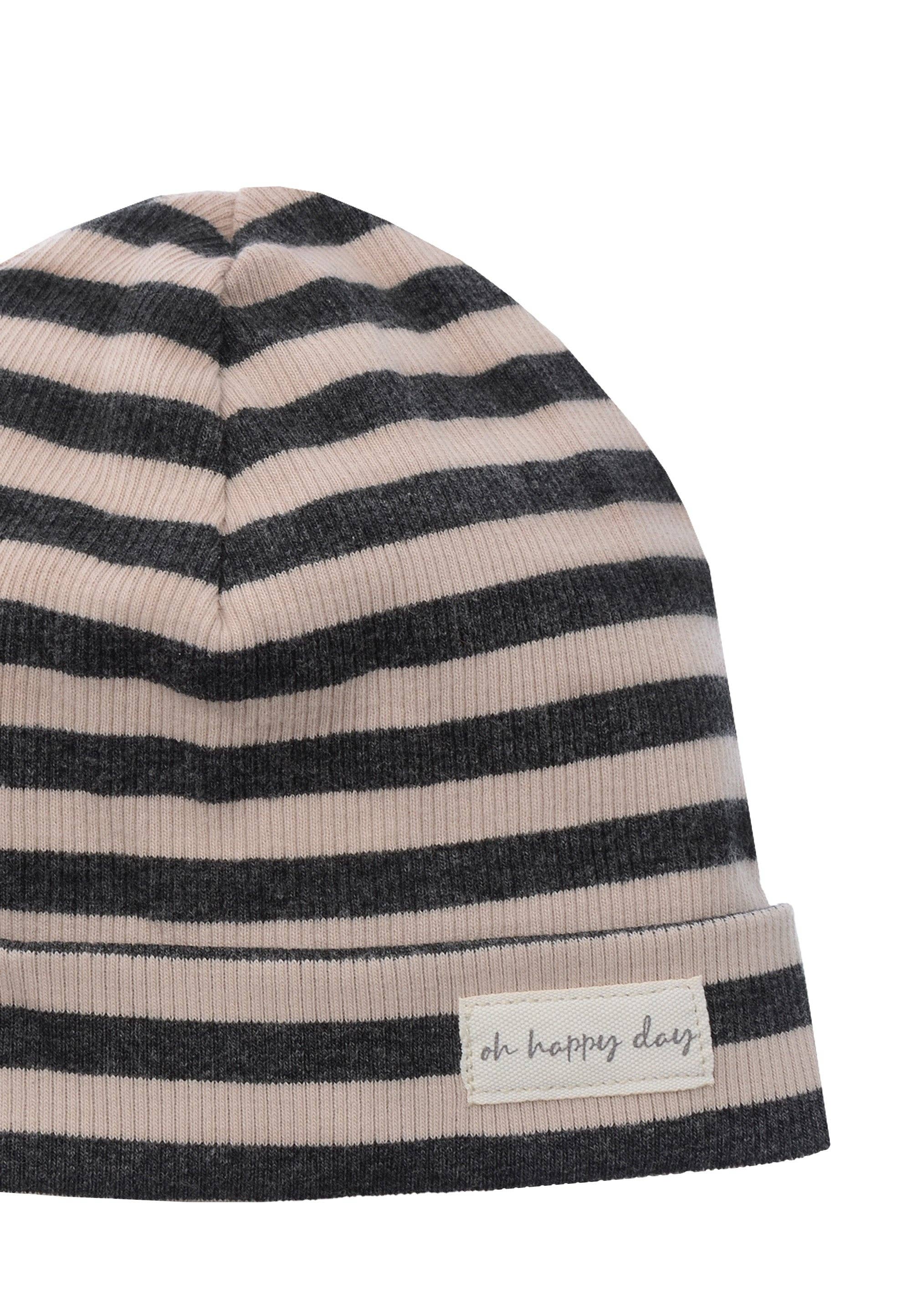 Lässige Umschlagmütze mit weicher Rippenstruktur und Patch "oh happy day".